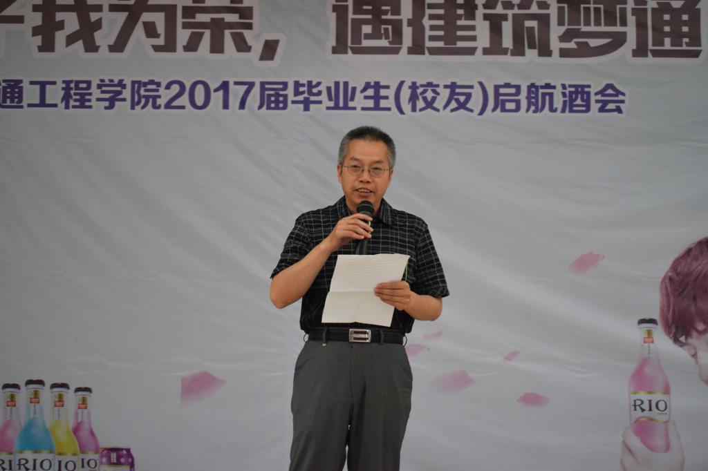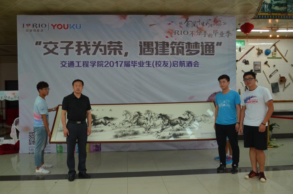 6月26日下午,交通工程学院在学校第一餐饮中心三楼艺术餐厅举办“交子我为荣,遇建筑梦通”2017届毕业生(校友)启航酒会,学院院长孙红,党委书记窦广会,副院长包龙生,党委副书记、副院长何林,团委书记、学办主任肖祖鹏,班主任、专业老师、各年级辅导员及13级全体同学近200人参加了本次活动。
