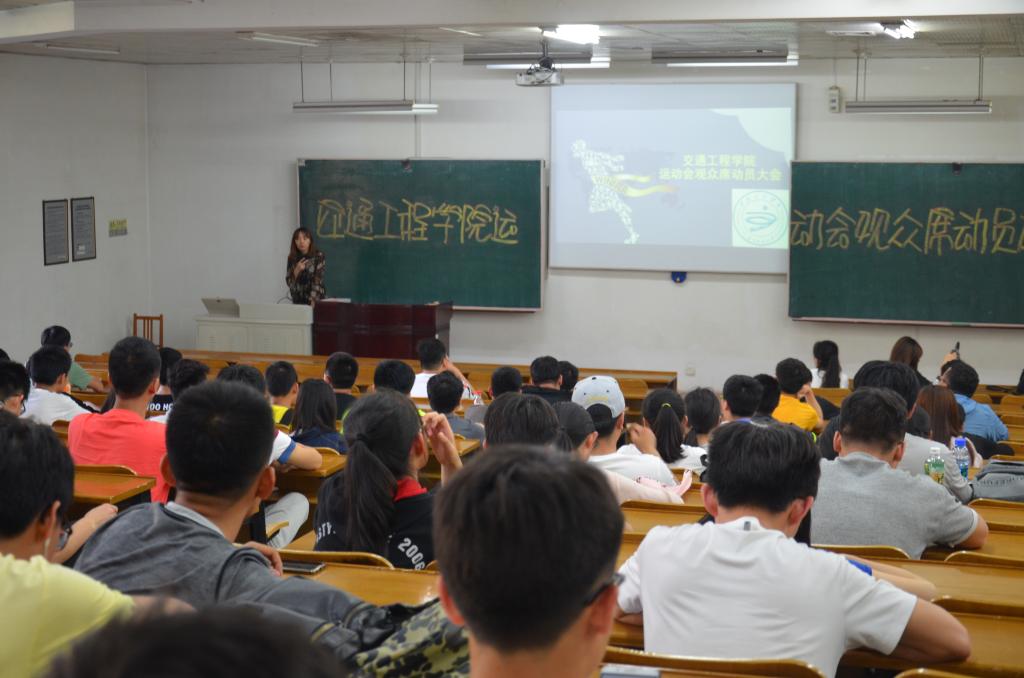 5月18日下午,为了进一步弘扬运动精神,活跃校园文化,为我院运动员加油助威做好准备,交通工程学院运动会观众席动员大会在B2-201教室举行。16级辅导员汤楚桐老师及16级参与观众席的近200名同学参加了本次动员大会。