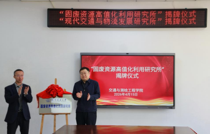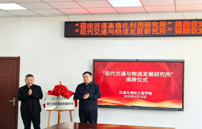4月15日,我校交通与测绘工程学院在丙2-305B会议室举行“固废资源高值化利用研究所”“现代交通与物流发展研究所”揭牌仪式。党委常委、副校长王凤池出席仪式。